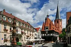 - Marktbrunnen (market fountain). The fountain standing opposite the Rathaus in Marktplatz was erected in 1575. A statue of the archangel Michael stands on a column above the fountain.