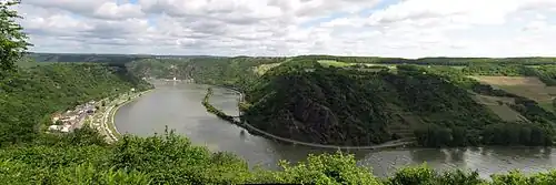 - 🌍 Loreley (above Sankt Goarshausen, opposite St. Goar). Large rocky outcrop on a bend in the Rhine river. Provides great views of the valley.