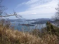 The views over the islands chain from the Ryuosan (竜王山) and Fudekageyama (筆影山) are worth the trouble. On clear days, one can see as far as the mountains of Shikoku island. They also make good spots to view the cherry blossoms (particularly the Fudekageyama) and autumn colors. There is an indicated walking trail connecting the two (about 40 min). They are accessible by car and bus.