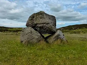 - 🌍 Auld Wives Lifts are two massive boulders on the hillside with a third perched on top. So they look like a prehistoric megalith but are believed to be a natural formation, and a circular etching on one was probably by a modern quarryman. Their name stems from a folk tale that three old women had a contest for the heaviest stone they could carry here in their aprons.