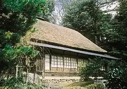- 🌍 Aoki Residence (青木家住宅 Aoki-ke jūtaku). The Aoki residence was constructed in 1915, as a retirement home for the Aoki family. It sits on a 3,590-㎡ plot of land, which is surrounded by a 2-m-high plaster wall. On the premises are the main living building, a shed, and several two storied storage houses, made from both earth and wood. The main building is approximately 20 m long, and 11 m wide, and features a tatami room, a reception, a bedroom and an earthen floor, among other things. The gabled roof has been built in irimoya-style. In 1998 the residence was awarded the status of nationally designated Tangible Cultural Property.