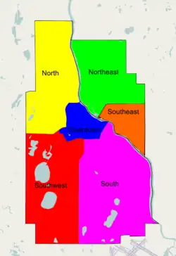 | Northeast The birthplace of Minneapolis in Old Saint Anthony, old Victorian houses on Nicollet Island, and further north the old working class enclaves of Northeast that are now home to a growing artist community. |