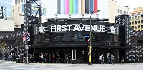 - 🌍 First Avenue, 701 1st Ave N (at 7th St), ☏ +1 612 332-1775. Probably the oldest and most legendary club in town. Dance nights of various flavors (house, salsa, etc.) are hosted as are local and national bands and the occasional weird event such as pro-wrestling and the roller derby league. Housed in the former Minneapolis Greyhound station, the club is at the corner of 1st Avenue and 7th Street, and can be easily identified by its black exterior decorated with silver stars of all the noteworthy artists who've played there. First Avenue gained national notoriety in the mid-1980s as the club where Prince played out his rivalry with Morris Day and The Time in Purple Rain. The club is divided into two main parts. The Mainroom is where the dance nights are held and national touring acts perform. The Mainroom is regarded as one of the premier sites for live music in the country. Often compared to Chicago's Metro, or San Francisco's Filmore. it offers nightly drink specials and a limited kitchen. The 7th Street Entry is a smaller room off to the side where one is more likely to see local bands or lesser known national touring acts. Don't be put off by the small size. Hundreds of touring bands have graduated from the Entry to become major touring acts. Son Volt, Wilco, The Replacements and Jane's Addiction are among the list of bands that played first in the Entry before moving on to the Mainroom, much bigger venues and even arenas.