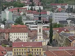• 🌍 St. Anne's Church (Hungarian: Szent Anna-templom,Vöröstemplom, Verestemplom), Szent Anna tér (Located on the north side of the St. Anna Square.). This is a Roman Catholic parish church. Locally it is often referred to as "Red Church", because of its red roof. The church was built between 1816 and 1823, in late Baroque style with some Neoclassical elements; the altar and the pulpit are late Neoclassical. The first public clock of the city was in the church's tower. The rectangular sanctuary of this two naves church, covered with 'Czech-cap' vault. OSM directions target=_blank