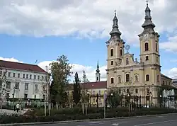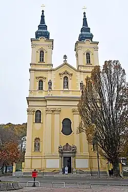 • 🌍 Mindszent Parish Church (officially:Apostles St. Peter and St. Paul Church, Hungarian: Mindszenti Plébániatemplom), Mindszent tér 2, +36 46 411777, +36 46 411 888, fax: +36 46 411114, . Guide by booking. Masses: Su and major holidays 07:00, 08:30, 10:00, 11:30, 18:30, M-F 07:00, 7:30, 18:30. Mindszent was a separate small settlement in the Middle Age, around 1880 united with Miskolc. The church was built on site of a smaller medieval chapel between 1728-1743. The two slender tower of its got in hundred years later. Inside of the church there are beautiful Baroque paintings and statues. Its altarpieces depicting St Peter and St Paul (at the high altar), the Virgin Mary, St Joseph, St Ladislaw, St Stephen paintings were done in 1855 and 1879. The Baroque statue of Mary with the jar (1739) stands before the church. A small Calvary shrine can be found not far from the church; it was consecrated by the Archbishop of Eger in 1864. Free. OSM directions target=_blank