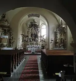 • 🌍 The name of the Virgin Mary Catholic Church in Diósgyőr (Hungarian: Szűz Mária neve - Római Katolikus templom), Miskolc, Puskás Tivadar utca 1 (Diósgyőr district, close to Sinva creek, south of II. János Pál pápa square), +36 46 379595, . Mass Order: Summer time: M-F 07:00, 18:30; Su 07:00, 08:30, 10:00, 11:30, 18:30. Winter time: M-F 07:00, 17:30. Su 07:00, 08:30, 10:00, 11:30, 17:30. Advent: 06:00; 17:30. The original Gothic reformed church was rebuilt in Baroque style in middle of the 18th century. Of the two cemeteries one is still working today, separated into Lutheran, Roman Catholic and Protestant sections. The first owners were members of St. Paul order (Paulines), but Minorites and Franciscan baptized. The entrance of the church look to the west, almost back to the city. This is due the church was formed to west of the settlement. The church was consecrated in the name of the Virgin Mary, in 1753. The main altarpiece depicting the Virgin Mary with a crown on his head, on the right of it is the baby Jesus who a sphere gives to his mother. The coat of arms of Diosgyor also depicts the image of church's patron saint, The church has three side altar, pulpit and an organ in the balcony. There most valued piece is a very old carved wooden statue of the Virgin Mary, which can be seen in a glass case, made in the 13th century by the Paulines. On the right side in an alcove, look like a cave, is an other statue of the Virgin Mary ordered by a cantor teacher to gratitude in memory of his children recovery from a serious illness Free. OSM directions target=_blank
