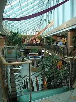 • 🌍 Miskolc Plaza, Szentpáli u 2-6 (half km west of Miskolc Bus Station behind the Centrum supermarket and department store), +36 46 503 000, . Restaurants, cafes daily 10:00-21:00, stores M-Sa 09:00-20:00, Su 10:00-19:00. The mall complex consists of three buildings connected by bridges. Building A is a two-storey building, hosting most of the shops around a large central hall. Building B hosts the cinema and some smaller shops, its ground storey is occupied by a car park and five smaller shops opening to the street. Building C is a three storey car park. There is a large supermarket and lots of different shops. Bowling. Gambling Hall. Six catering units located here: fast food restaurant, snack bars, cafe-restaurants. Cinema ticket from Ft 1090 (2014). OSM directions target=_blank