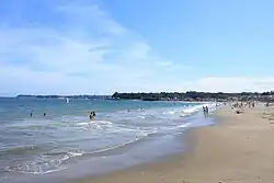 Miura Beach (三浦海岸) is popular for swimming in summer and fishing for all seasons. In the summer season, seaside clubhouses (海の家, umi-no-ie) are built at the beach. These houses sell many types of food, and summer goods.