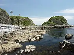 - Jōgashima (城ヶ島) is a small island lying just off the extremity of the Miura Peninsula, connected by a short bridge to the mainland. It offers a good day's worth of wading in tide pools full of marine life, relaxing on the beaches, and hiking on trails through heavy bamboo thickets. There are two lighthouses on the island and a park on the eastern side, from which you can see the southern Boso Peninsula in Chiba prefecture. The island has plenty of seafood restaurants and a resort hotel. To get to Jogashima, take the Keikyu Line (from Shinagawa via Yokohama) to the end of the line at Misakiguchi, then catch the #9 bus.
