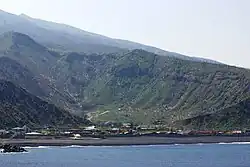The island is a stratovolcano with a granitic composite cone, dating from the late Pleistocene period, between 10,000 and 15,000 years ago. The island has a roughly circular coastline, 38.3 km in length, with an average diameter of 8 km. The highest elevation Mount Oyama (雄山, Oyama-san) is an active volcano with a height of 775.1 m. The mountain has been recorded to have erupted numerous times throughout history, and is mentioned as far back as Nara period written records. Over the past 500 years, it has erupted 13 times, including five times since the start of the Meiji period. A lava flow in 1940 killed 11 people, and other eruptions occurred in 1962 and 1983.