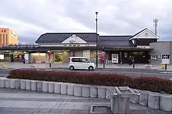 Half a dozen buses leave from the stops in front of the station. From stop number 3 buses leave hourly for the Jodogahama beach and get there in about 20 minutes. Get off one stop earlier at the Terminal Building (ターミナルビル) and walk along the coast for some 500 m to save a few yen and see more.
