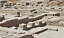 Adjoining the wealthy residential area, there is what is thought to have been a large bazaar. One building that has been excavated has circular depressions in the ground, leading many to believe that it was a dyer's workshop and that the depressions were used to hold pottery vessels.