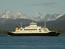 A ferry operated by Fjord1, from Vestnes ferry dock, crosses the Romsdal Fjord from early morning to far into the night, usually every half hour. This ferry is part of road E39. The ferry docks in Molde city centre and is frequently used by passengers without car. The ferry is an excellent way to arrive in Molde as it runs slowly along the city centre to the dock giving a good view of the town.