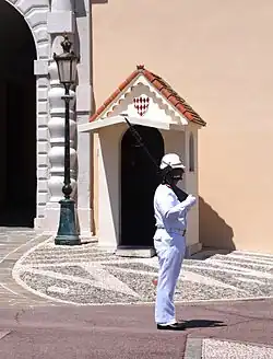 Guard at the Prince's Palace - 🌍 Palais Princier (Prince's Palace), ☏ +377 93 25 18 31, visites@palais.mc. 10:00-18:00; Jul Aug 10:00-19:00; Oct 17-Mar 25 off. The Palais Princier is in old Monaco-Ville and is worth a visit. There are self-paced, audio-guided tours of the palace. The palace also offers a breathtaking panoramic view overlooking the Port and Monte-Carlo. Everyday at 11:55, in front of the Palace's main entrance visitors can watch the changing of the guard ceremony performed by the "Carabiniers". “Carabiniers” are not only in charge of the princes’ security but they offer him a guard of honor and on special occasions, are his escorts. The “Compagnie des Carabiniers du Prince” has a military band (Fanfare), which performs at public concerts, official occasions, sports events and international military music festivals. €10.