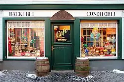 The old town has a wide selection of tourist oriented shops, selling a range of souvenirs, books and clothing. Local food specialities include Printen, a spiced cooky, Dütchen, a biscuit like roll often filled with cream and fruits and mustards. A square type of chocolates called Monschauer Venn-Brocken is shaped to resemble the peat blocks that were locally produced in large quantities to fuel the textile industry. All of these can be purchased from many tourist shops, cafés and the several bakeries you'll encounter in the old centre. There's one small supermarket in the lower part of the Laufenstraße, but for other shopping opportunities (including supermarkets Aldi, Lidl and Kaufland) head to the neighbouring town Imgenbroich. Many of the tourist shops in the old centre are open on Sundays, but that's not the case for all regular stores.