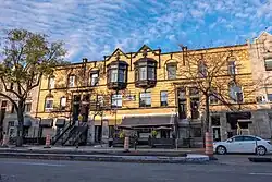 In addition, there are a few buildings of note scattered around the Plateau. The Warshaw building (boulevard Saint-Laurent and rue Bagg) dates from the 1920s and was the Plateau's first skyscraper. Though it has only seven floors, it is a distinctive feature of the neighbourhood. Farther north, 4020 boulevard Saint-Laurent is recognisable by its impressive refinished neo-Art Deco exterior. Also, there are many large churches from the 19th century and the early 20th century. Most notable of these would be the oriental looking St. Michael the Archangel, located at 5590 rue Saint-Urbain at rue Saint-Vincent ouest.