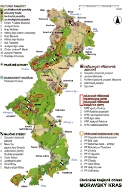 Moravian Karst (Moravský Kras) is a Protected Landscape Area in the South Moravia region of the Czech Republic. It features numerous deep caves and gorges. Even though it is not listed as national park, it is often regarded as one of the most interesting natural sights in the Czech Republic.
