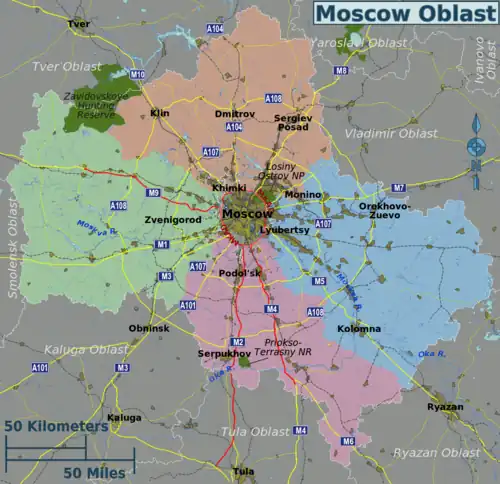 In most cases travelling to the Moscow Oblast is done via the transport hub of the city of Moscow.