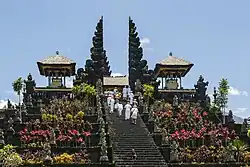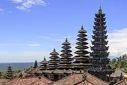 • Besakih Temple (Pura Besakih). The temple complex in the village of Besakih, about 1,000 m up the slope of Mount Agung, is the holiest in Bali. It consists of 23 temples. The biggest, not surprisingly, has the word "agung" ("greatest") in its name and is called “Pura Penataran Agung”. The temple has six tiers, built as terraces.