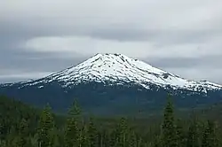 Mount Bachelor is an inactive volcano in the state of Oregon. The surrounding area offers snowshoeing, snow skiing, snow tubing, and dog sledding, among other activities in the winter, and fishing hiking and camping during the rest of the year. There is also a trail to the top of the mountain. Mount Bachelor lies within the boundaries of the Deschutes National Forest.