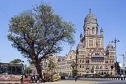 - 🌍 Municipal Corporation Building, 5, Mahapalika Marg, Dhobi Talao (southwest corner of CSMT). The V-shaped building built in Victorian Gothic style houses the office of the Brihanmumbai Municipal Corporation (BMC), also known as the Municipal Corporation of Greater Mumbai (MCGM), the civic body that governs the city of Mumbai. BMC was formed in 1865, the building came up in 1893 and ever since it serves as the headquarters of BMC. The building was designed by the civic body that governs the city of Mumbai, and is classed as grade IIA heritage. The building is dominated by a 255 ft (78 m) tall tower, which is crowned with a massive dome. The pediment of the building is crowned with a statue of a Winged allegorical figure representing the urbs prima in Indis. The pediment also houses the coat of arms of Mumbai.