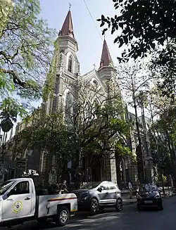 - 🌍 Cathedral of the Holy Name, 19, Nathalal Parikh Marg. Cathedral of the Holy Name is the Catholic Cathedral of Mumbai. It is the headquarters of the Archdiocese of Mumbai. It is the seat of the Archbishop of Mumbai. The Mumbai (then Bombay) Catholic Christian life was centred around the Fort Chapel in Medows Street, which was constructed in 1767. At the beginning of the 20th century, the little Chapel was unable to accommodate the large congregation during the Sunday Masses. The foundation stone of the church was laid on 9 July 1902 by the then archbishop Dalhoff and it was opened to the public on 15 January 1905. The church was designed and constructed by W.A. Chambers, an established architect of the firm of Messrs. Gostling, Chambers and Fritchley. The complex consisted of three similar-styled buildings. At the centre was the church, the school on the north side and the residence for the clergy on the south side. On 3 March 1964, it was granted the status of a Cathedral. The cathedral follows the gothic style of architecture, with two towers containing the belfries surmounted by octagonal spires which, like the main roof are covered with Mangalore tiles. The interiors are well laid with ceilings and the walls are covered with frescoes and geometrical designs. The beautifully carved marble altar is surrounded by intricately designed stained glass windows. In 1998 the cathedral received the status of a heritage building.