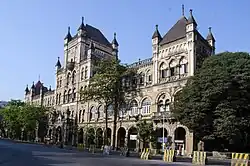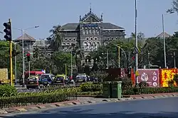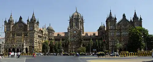 It is one of the main disembarking stations for suburban and long-distance trains. The road goes further up to Ballard Estate where a lot of corporate offices and Mumbai Port are situated. The station building is designed in the High Victorian Gothic style of architecture. The building exhibits a fusion of influences from Victorian Italianate Gothic Revival architecture and traditional Indian architecture. The skyline, turrets, pointed arches, and eccentric ground plan is close to traditional Indian palace architecture.