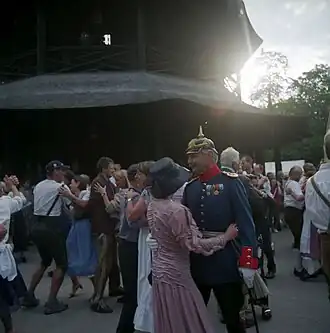 - Kocherlball ("Cooks' Ball") is held at the Chinese Tower beer garden on the third Sunday in July, from 06:00 to 10:00. The custom started in 1880 as a festival for the town servants: not just the cooks, but all the table maids, ostlers, boot boys, grooms, skivvies, the lot. And they all had to be back on duty by the time their masters returned from church, hence the early start and finish. It was banned as immoral in 1904 but re-started in 1989 to mark the 200th anniversary of the gardens. Many come in period peasant or servant clothing, arriving from 04:00 to bag good places, and perform traditional Bavarian dances.