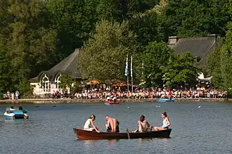 - 🌍 Seehaus, Kleinhesselohe 3 (U-Bahn U3, U6: Münchner Freiheit), ☏ +49 89 381 6130. M-Sa 12:00-00:00, Su 12:00-22:00. Beer garden with 2500 seats by a small lake in the English Garden. This and the artistic boathouse and other structures were designed by Gabriel von Seidl in the late 19th century. Enjoy a beer and Bavarian fast-food while small boats pootle by.