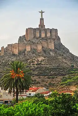- Another place that shouldn't be missed is the Moorish castle on top of the Monteagudo mountain that can be seen from almost anywhere in Murcia. It was converted to Christianity by placing an "open arms" image of Christ on the top. Directions: leave Murcia by the old Alicante road and it will take you 5 minutes to reach. The motorway to Alicante will also take you there. Park the car down the mountain and walk to the top. You can touch Jesus's feet and toes (bigger than footballs!) while having a look at Murcia and his huerta.