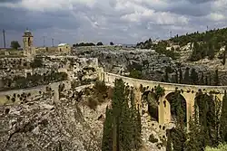 The Bridge Acquedotto Madonna della Stella, also known as Ponte della Gravina (184, Federico Mennini Street, Gravina in Puglia), is a famous bridge included in the so called Luoghi del cuore (Places of the heart) listed by the Italian cultural association FAI Fondo Ambiente Italiano for its historical and cultural background. Few things are known about it, but it is for sure that it already existed in the XVII century and collapsed some years later due to an earthquake, then rebuilt by order of the Roman family Orsini who lived there during the XVIII century (Gravina was at that time part of their feudal land). They wanted to rebuild it as aqueduct able to conduct the waters from the water sources Sant’Angelo and San Giacomo under the city walls.