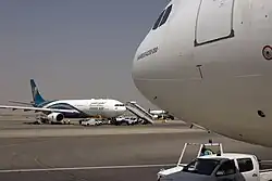 - Gulf Air, ☏ +968 24 703222, +968 24 703544, fax: +968 24 7003381. Flights from Bahrain to Muscat.