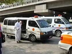 The Maxi Taxis ply the main routes through town, and they go where they want so you might have to find one going your direction. Once you are on one, they will make sure you get there. The place to wait for them is on the on-ramps of most of the main highway junctions, when you'll usually see a few people waiting around for one. A journey within the Muscat area should not cost more than RO 0.300 each, but if you look like an experienced traveller and hand them RO 0.200 then you can usually get away with that.