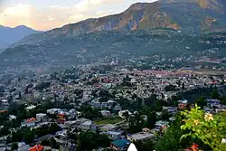 Muzaffarabad (Urdu: مُظفَّرآباد, Pahari, Potwari, مُظفٌر آباد) is the capital of Azad Kashmir in Pakistan. It is located on the banks of the Jhelum and Neelum rivers. The district is bounded by North-West Frontier Province in the west, by the Kupwara and Baramulla districts of on the Indian side of the Line of Control in the east, and the Neelum District of Azad Kashmir in the north. The elevation is 737 m and the population is about 150,000 (in 2017).