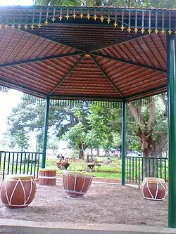 - Photo session at Court Park, Opposite District Court complex (2 km on Mysore University road). The court park or what is officially called 'Manuvana Park' is a twin park with a lot of photo opportunities. There is more maintenance and so the park is more beautiful. Water sprinkling is very effective to the level that you have to shift your seating quite effectively. There are swings and other kid attractions also. Another thing the availability of vendors who give fruits in potpourri for ₹20. Lunch or 'Ootta' is also offered at the same rate even though the average rate is ₹60 in Mysore.