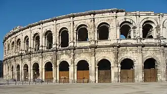 - 🌍 Les Arènes (Roman Amphitheatre), Place des Arènes, ☏ +33 4-66-76-77. 09:00-12:30 and 14:00-18:00. a well preserved Roman arena that hosts bull fighting festivals in September. It was built 100 AD to seat 24,000 spectators It seats 10,000 when full and is an amazing site.
