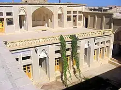 - 🌍 Fatemi House. Grandest traditional house in Na'in. It's in front of Narenj Castle, beside the old bazaar. The house belonged to a very influential family in Na'in. It consists of a large number of sections, each one with a different function: winter living rooms, summer living rooms, stable, resting rooms, silos, corridors, dining rooms for guests, and other facilities. Most of the rooms are furnished with stained glass windows, inlaid wooden doors, and plasterwork. The house is now the property of a cultural heritage organization.