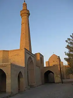 - 🌍 Jame Mosque. Tu-Su 08:00-21:00 in summer, or 08:00-18:00 in winter. The construction of Jame Mosque dates back to the 8th century CE, but the whole of the complex has been constructed in stages. The stucco around the Mihrab (niche) belongs to Ale'Buye in the 11th century. The yard was constructed in the time of the Siljuks (12th century), and the basement is believed to be pre-Islamic and later became part of the mosque, one of the oldest in Iran. Its magnificent plasterwork over the niche, the marvellous brickwork around the yard, and its silent basement--which may have been used as a fire temple before the mosque was built here—are only a few of its features. This mosque has no Iwan and dome as do the other famous mosques in Isfahan and Yazd. A 28 m tall octagonal minaret was added almost 700 years ago. If you stand in the middle of the yard, you will find yourself surrounded by 14 columns, each one adorned with a unique and intricate pattern of brickwork. The alabaster stonework reflects sunlight throughout the basement. An underground water channel runs underneath the mosque. There is a stairway that connects the mosque to the water channel and to chambers above the pool. 100,000 rials.
