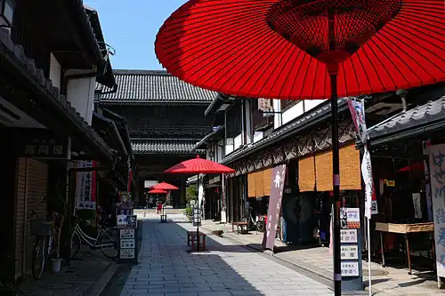 - 🌍 Jinshōji Temple (神照寺), 323 Shinjōterachō (buses to Jinshōji-mae leave from Stop 1 at Nagahama Station and cost ¥280), ☏ +81 749-62-1629. Jinshōji is the oldest temple in Nagahama and was founded in 895 (Kanpyo 7). There are many valuable cultural assets such as statue of a multi-armed deity, and a Cetaka statue looking over his shoulder. Kinginto Sukashibori Keko (flower basket motif in lace worked arabesque carving in gold and silver), a national treasure, is especially worth noting since it has been exhibited in the Boston Museum of Art and other famous international art museums.