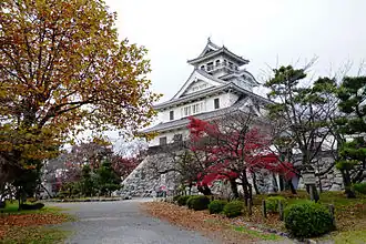- 🌍 Nagahama Castle (長浜城), 10-10 Kōen-chō (7 minutes walk from the West Exit of Nagahama Station (towards the lake). It should be visible!), ☏ +81 749-63-4611. 09:00-17:00 (last admission 16:30). Nagahama Castle was built in 1575-1576 by Hashiba Hideyoshi (later known as Toyotomi Hideyoshi) in the village then called Kunitomo, renaming the area Nagahama. In 1615, the castle was demolished, though parts of it were utilized in the construction of Hikone Castle. The castle as it was rebuilt in 1983 and houses a museum (in Japanese only) about the history of Nagahama. Nagahama Castle is in the middle of Hokoen Park, which is the only place you'll find nature in Nagahama, and has a stunning view of Lake Biwa. In Spring, it is a favorite place to picnic under the cherry trees. ¥400 adults, ¥200 children.