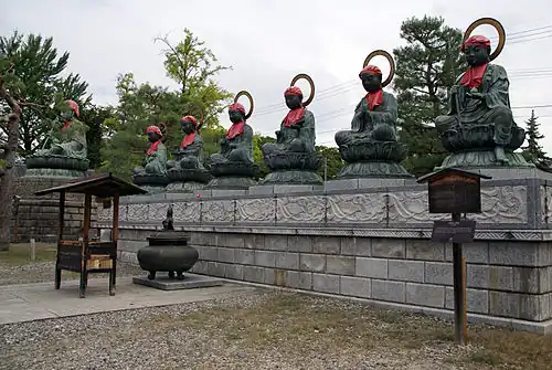 • 🌍 Zenkōji (善光寺). This temple, built in the 7th century, is a major pilgrimage site. Its major draw is the hibutsu (秘仏), or hidden buddha. Its replica statue dating from the 15th century is displayed to the public every six years (the last time was in 2022, one year postponed for COVID19. The next is due 2027). A major renovation of the great inner gate was finished in 2007. You can see a beautiful row of houses along the street. There are restaurants with atmosphere. You can also buy talismon as a souvenir. OSM directions target=_blank