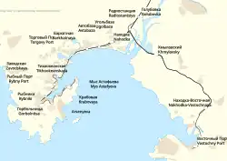 The city spreads along the harbor for more than 40 km. The central street is Nakhodkinskii Prospekt, along the shoreline.