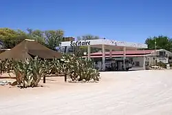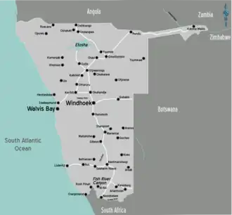 Namibians love camping and the outdoors. Near every tourist attraction you will find several camp sites, from very simple, communally run places on sand that just have water and a dry toilet (about 100 N$ per person) to private park-like settings with lush grass, power sockets and a sink per camping spot, shade, and private WCs (about 200 N$ per person). In the national parks there are places without any amenities where you even have to bring water. These often need a 4x4 to get to, and you have to buy a permit in advance which is more expensive than staying at the best camp sites in the country. The chance to get caught without a permit is small but if they get you they will impose a 7.800 N$ fine—per person! If you spot a nice place to camp next to the road, check if there is a fence. If there's a fence then that's a farm. Farms are private properties. Don't enter a farm without notifying the farmer and asking for permission. Wild camping is allowed (but not very safe, luxurious or pleasant) on the side of the road between the banks and the farm fence, or in the areas that are neither commercial farms nor protected areas.