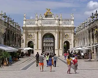 - 🌍 Arc de Triomphe (Porte Héré). A Baroque arch by Emmanuel Héré, along the northern side of the Place Stanislas, leading to the Place de la Carrière. It was built at the same time as the Place Stanislas, in honour of King Louis XV.