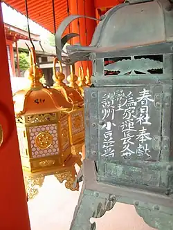 - 🌍 Kasuga Taisha (春日大社), 春日野町160, ☏ +81 742-22-7788. Worth a visit for the beautiful approach, through the Kasuga-yama Primeval Forest (see below), more than the temple itself. What Kyoto's Fushimi Inari Taisha is for torii, Kasuga Taisha is for stone lanterns. Notice the giant rack of sake barrels near the front gate and the fountain-statue of a giant buck. The temple is occasionally closed for services, but a walk around the outside is likely to be no less rewarding. Grounds free, inside of shrine ¥500, treasure hall ¥400.