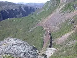 Narvik is the terminus of Malmbanan ("Iron Ore Railway", in Norway known as Ofotbanen), the railway from northern Sweden. It is mainly used for shipping enormous amounts of iron ore from mines in Lapland, it also offers passenger services. As part of the line runs through the very steep and inhospitable Narvik mountains, the construction was an engineering achievement. Control of this railway and the Narvik port was one aim of the German invasion of Norway in 1940.