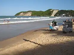 - Ponta Negra (accessible from Av. Eng. Roberto Freire). The favorite beach of tourists and wealthier locals. Excellent water quality and infrastructure, with many restaurants and utility shops in the beach front. Contains Morro do Careca, the tallest sand dune of Natal and one of the city's most famous landmarks. Near Morro do Careca the ocean is very calm, which makes it one of the favorite spots to bring kids to the water.