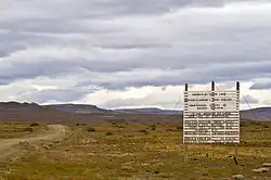 Highway 40 overlaps Highway 3 for 35 km, then turns to the west and follows the Río Gallegos valley. The next built-up area is about 235 km away, from 🌍 El Turbio onwards. This is Argentina's biggest coal industry plant, though the production has been cut down since the 1990s when it was hit by the economical crisis. After the town of 🌍 28 de Noviembre, the road turns north and merges with highway 5 which it will overlap with until 🌍 Charles Fuhr.