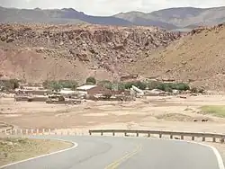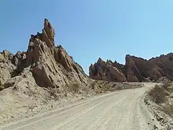 Exiting the oasis at San Juan, the road goes through a dry, hilly landscape. 130 km north of the provincial capital is the second biggest oasis in the Jáchal valley with the city of 🌍 San José de Jáchal. The highway circumvents this city of 20,000 inhabitants; if you wish to enter, take RN 150 and then RP 456 and RP 491 to get back to highway 40 at 🌍 Huaco.
