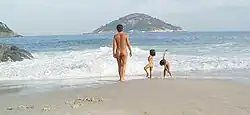 Many locations maintain fairly strict codes of public conduct, intended to keep them suitable for families with minor children and/or to avoid running afoul of laws against "lewd conduct" in public. Some resorts do a quick background check to screen out those who have been expelled from other naturist venues. If your employment has a "morals clause," seek legal advice first, unless naturism is quite popular and non-controversial in the area you work. Innocent men who experience arousal should cover up, roll over, or get into the water, and NEVER seek attention. Don't visit nudist resorts or beaches to be a voyeur, and be sober. Keep cameras and cellular phones out of sight and powered off. Learn the expectations of any specific naturist destination before traveling there. You can usually use the net to find out about their rules, and other information. Even if you know the basic rules of naturism, individual resorts may have a few unique ones. Some resorts and most Brazilian naturist public beaches prohibit a single man from entering unless they are accompanied by a woman (or the entire family). Others don't insist on being accompanied, but have quotas, such as a maximum of 60 percent males members. For a single-male newcomer, this may be a distinction without a difference.
